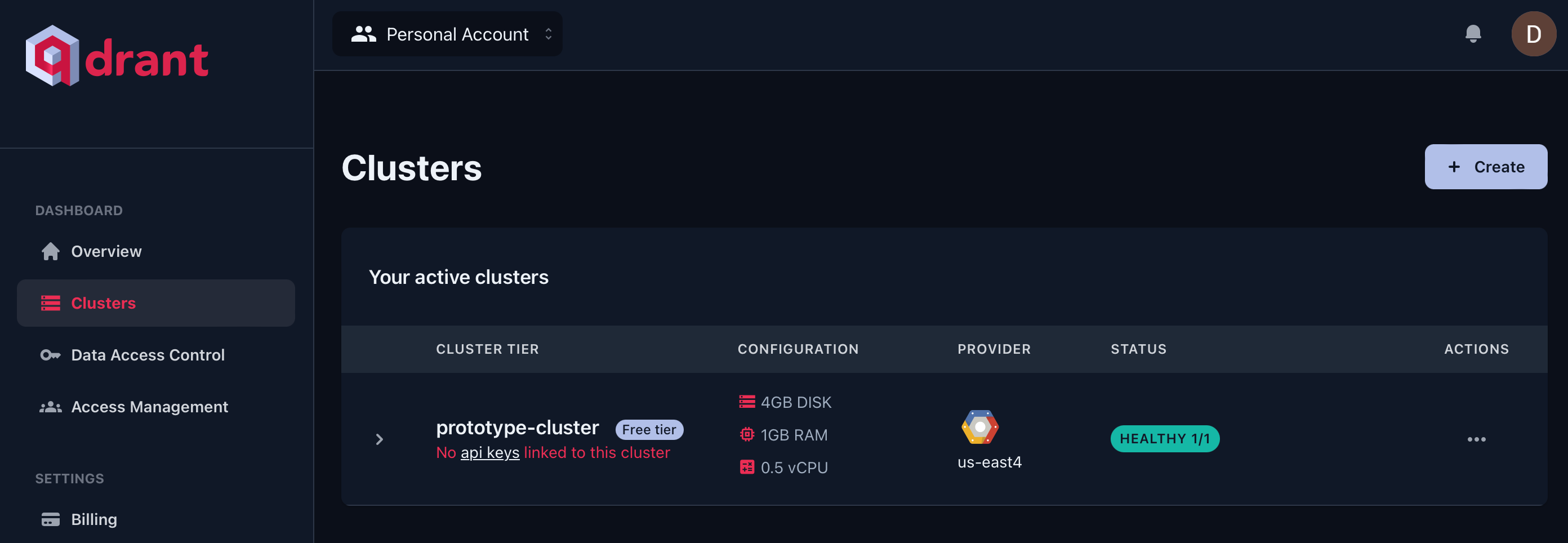 - Создайте новые учетные данные для Qdrant, используя API агент.